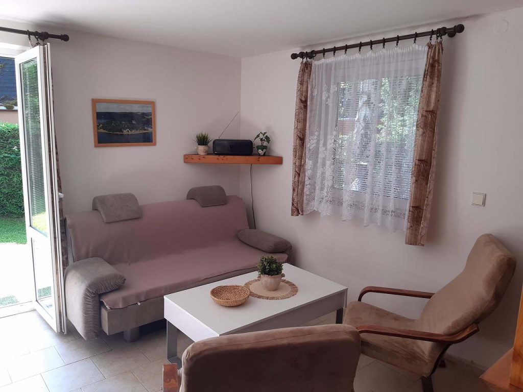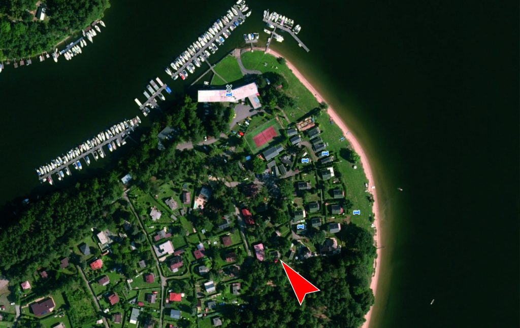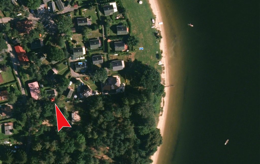 Pláž vzdálená pouhých 70m nabízí travnatou plochu a pozvolný písečný vstup do vody.